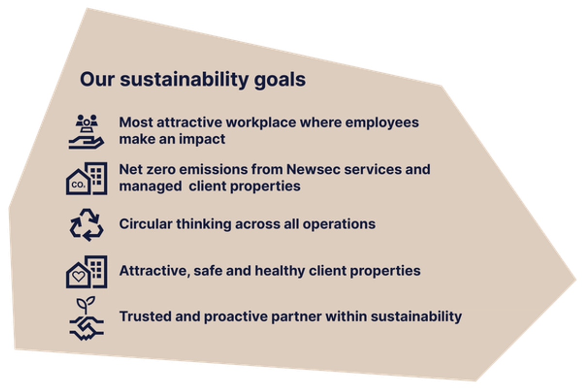 Newsec on merkittävä toimija kiinteistöalalla, joten meillä on todellinen, mitattavissa oleva vaikutus yhteiskuntaan jossa toimimme. Vastuullisuustavoitteet ovat osa liiketoimintastrategiaamme, ja ne ohjaavat jokapäiväistä toimintaamme. Tavoitteemme kuvaavat tulevaisuutta, jonka haluamme nähdä; suuntaa, johon haluamme edetä ja mitä sitoudumme saavuttamaan. Sen sijaan, että keskittyisimme esteisiin, keskitymme kestävän kehityksen luomiin mahdollisuuksiin.