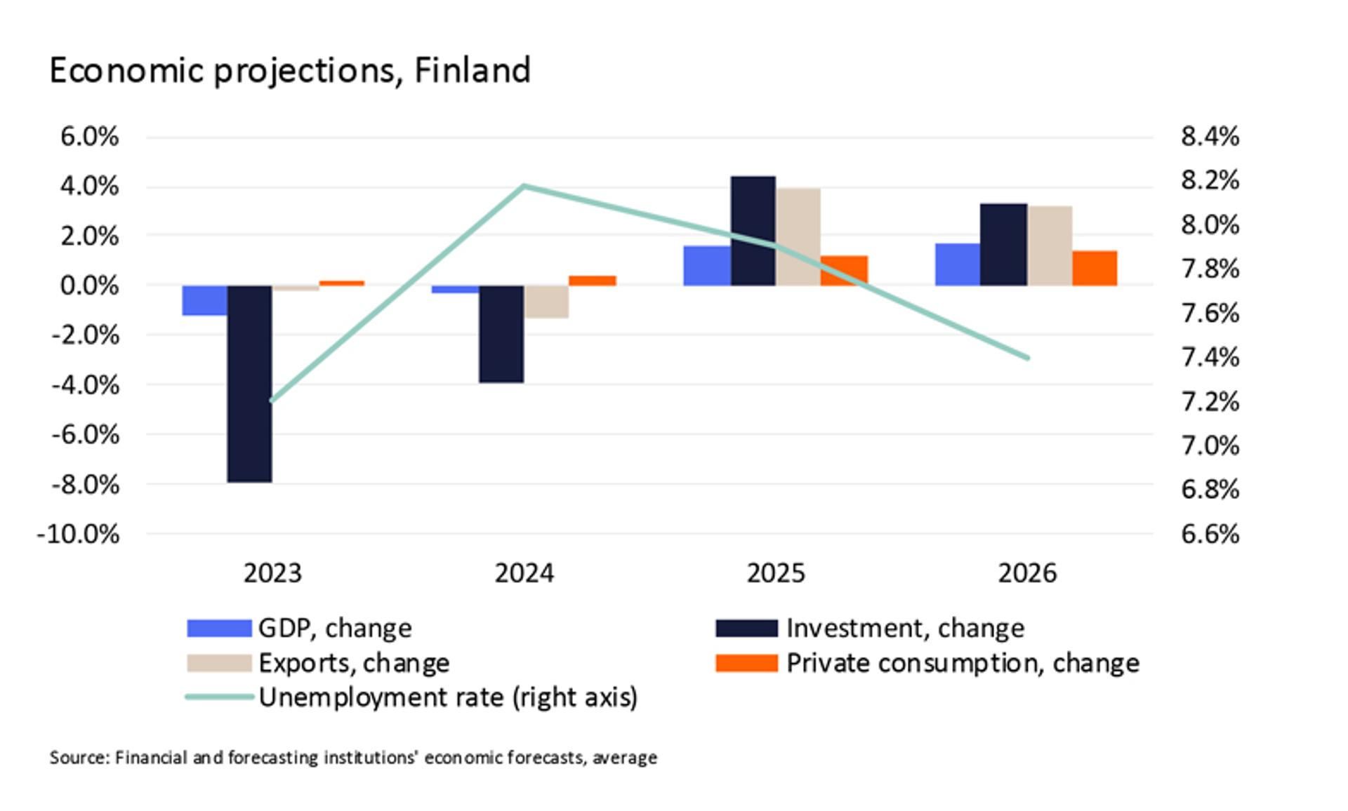 - Finland's economy is set to shift to a moderate growth trajectory from 2025 onwards, supporting the recovery of real estate transactions.