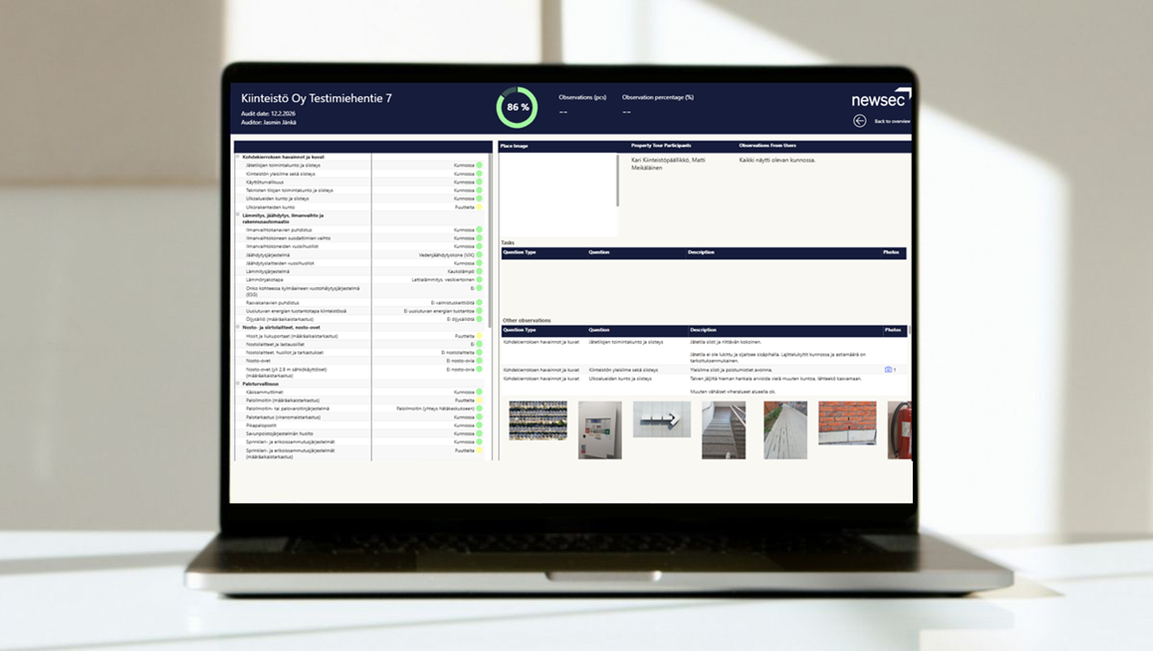 Newsecin asiantuntevien kiinteistöpäälliköiden vuosittain tekemä kiinteistöauditointi kattaa jokaisen asiakaskohteemme. Näin varmistamme, että kiinteistöt täyttävät kaikki vaatimukset ajantasaisesti ja luotettavasti.